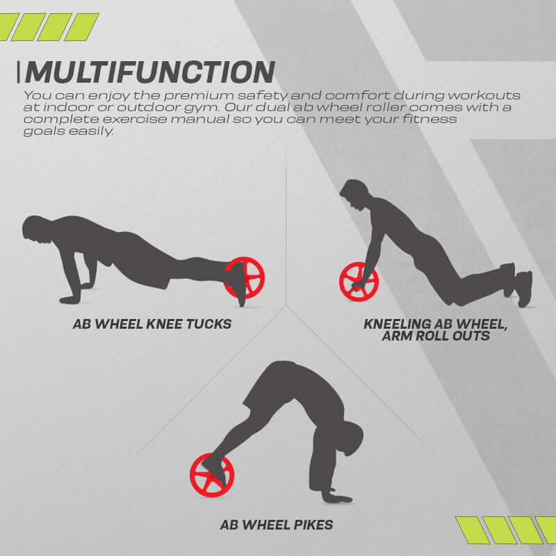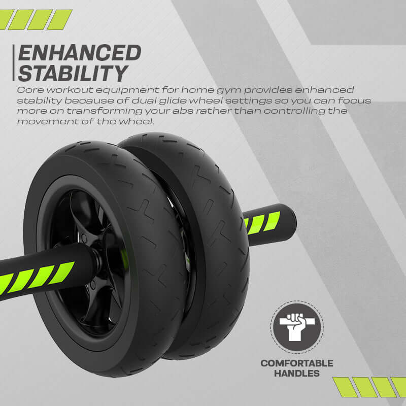 - ENHANCED STABILITY - core workout equipment for home gym provides enhanced stability because of dual glide wheel settings so you can focus more on transforming your abs rather than controlling the movement of the wheel. Comes in scintillating combination of green and back colour.