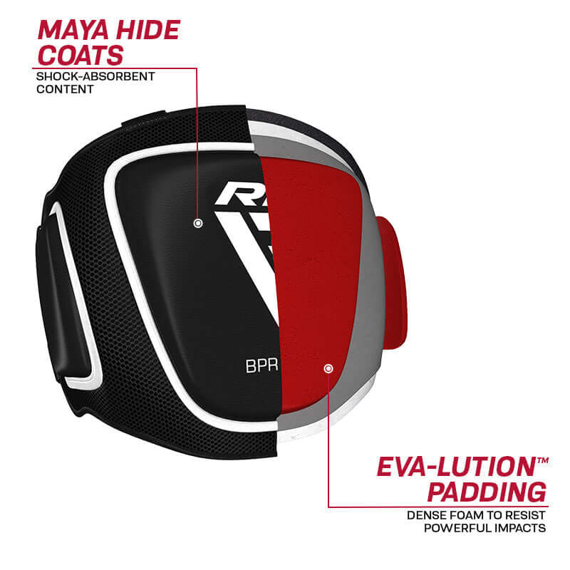 RDX’s latest addition to its arsenal of Belly Pads are a sigh of relief for trainers and coaches around the World. Made to withstand everything, and the kitchen sink. This belly guard is built to chew up shock-impact, resulting in a sharper, stronger, and more confident fighter.CE certified by SATRA TECHNOLOGY.