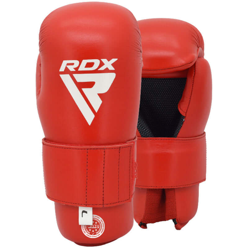 Made using proprietary combat leather, Super Skin protects the impact dulling PU mould of these WAKO kickboxing mitts.